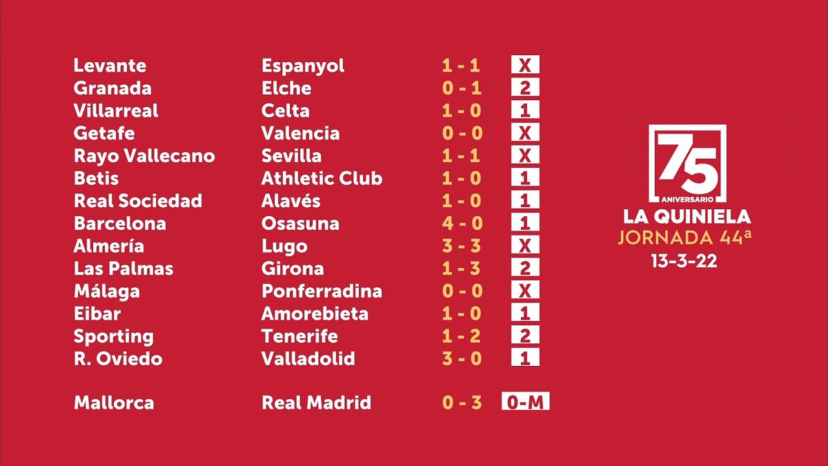Quiniela Y Quinigol 13 Marzo 2022 Loterias En Rtve Es